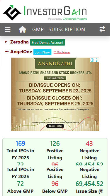 InvestorGain.com is a trusted destination for comprehensive, genuine, and up-to-date information of inital public issues and leading online stock brokers in India.