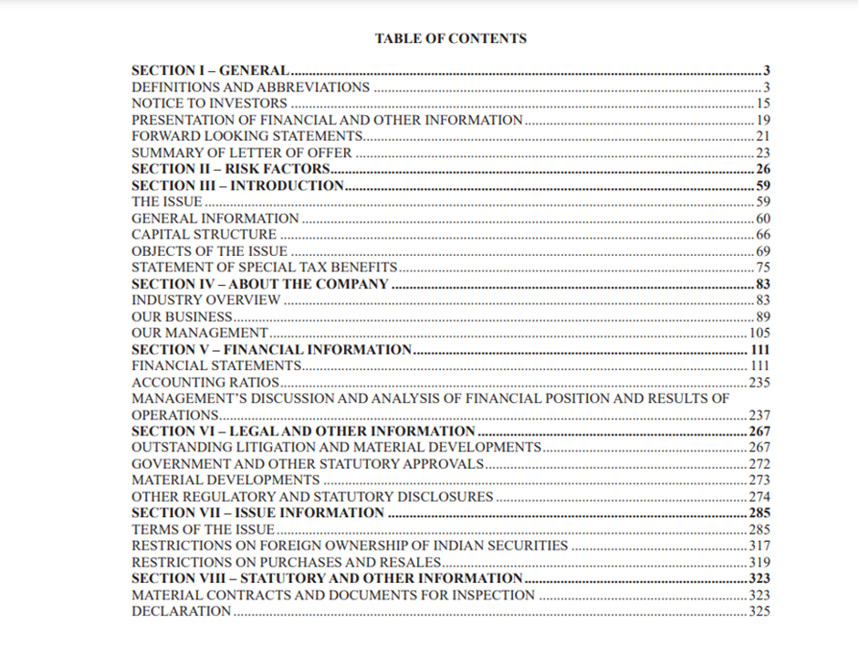The Rights Issue Letter of Offer (LOF) contains essential details that help investors make an informed decision. Below is an overview of the main sections and what each covers: